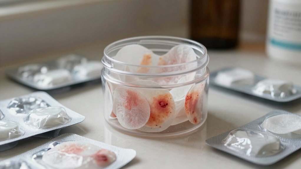 Think of your hydrocolloid patch as a sponge soaking up impurities. You should leave it on until the patch turns opaque or white, signaling it’s full. Generally, follow the patch removal timing and patch duration guidelines, which recommend 6 to 12 hours. Don’t leave it on too long, as it won’t work better and could irritate your skin. Change patches daily to keep your skin clear and healthy.