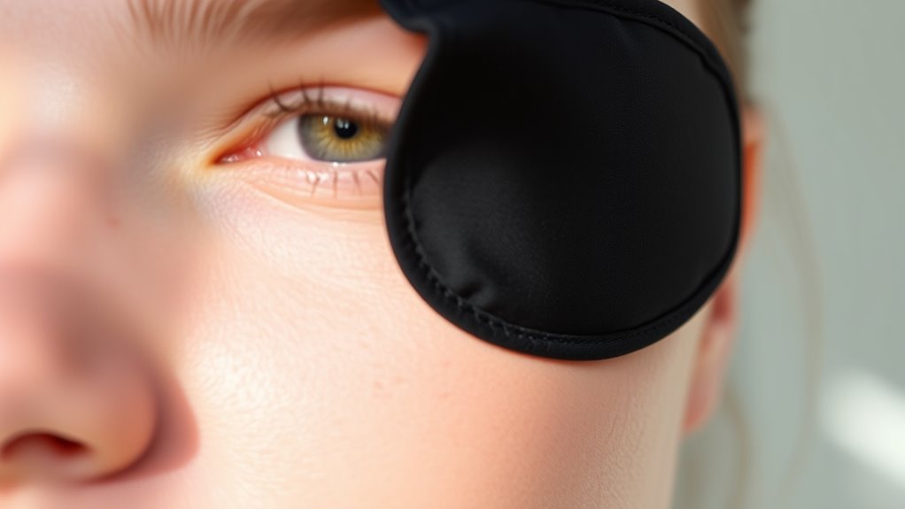 Think of applying your patch like laying a foundation—precision matters. To optimize adhesive strengths, start with clean, dry skin and gently press the patch, smoothing out air bubbles. Use application techniques like warming the patch slightly or applying gentle pressure to enhance adhesion. These steps help your eye patch stay put, preventing slips and ensuring comfort. Proper technique guarantees a secure fit, so your treatment remains effective and hassle-free.