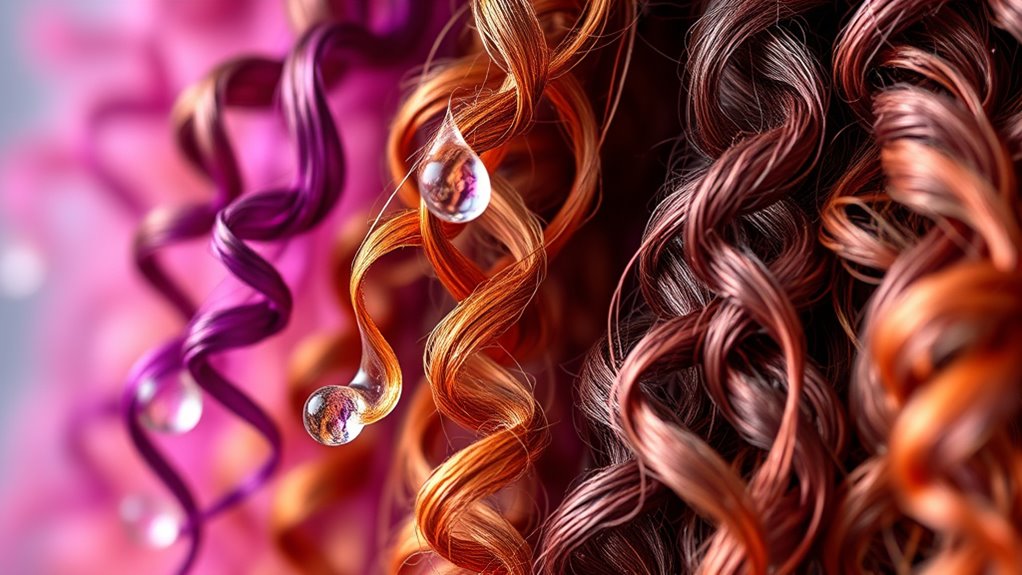 Understanding your hair’s porosity helps you know how well it absorbs and retains moisture. To test it, take a clean, dry strand and place it in a glass of room-temperature water; if it sinks quickly, you have high porosity, and if it floats, it’s low porosity. Knowing your porosity allows you to choose the right products and treatments. Continue exploring to learn how to effectively test and treat your hair for healthier, more balanced moisture retention.
