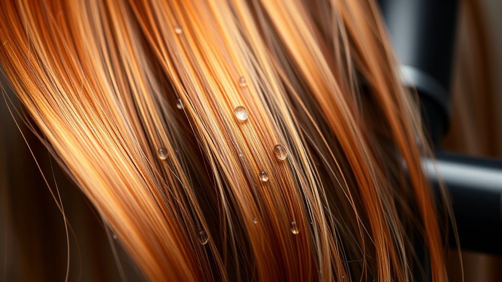 Natural oils can provide some protection against heat damage, but they aren’t foolproof. When you apply oils like argan or coconut before heat styling, they create a barrier that helps lock in moisture and reduce direct heat contact. However, overuse or excessive heat can still cause damage, so it’s essential to combine oils with heat protectants and avoid high temperatures for ideal hair health.