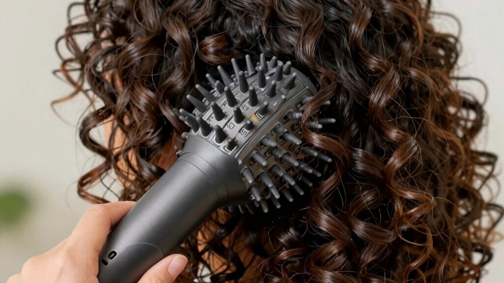 You’ll get better curl retention with a diffuser, believe it or not — air drying benefits are often overstated. Using a diffuser with gentle techniques lifts your curls without crushing them, unlike air drying which can leave your curls limp or frizzy. So, skip the air and embrace diffuser techniques; your curls will thank you with bounce, definition, and the shape you crave.