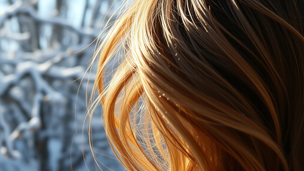 In winter, you need to focus on balancing indoor humidity to prevent dry, brittle hair by using humidifiers and nourishing treatments with oils. Use lukewarm water to wash your hair and avoid heat styling to reduce damage. Protect your hair from static and cold air with anti-static serums and scarves. Eating a balanced diet and staying hydrated also boost moisture from within. Keep exploring tips to keep your hair healthy all season long.