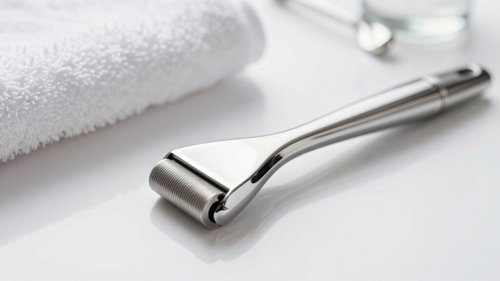 A stitch in time saves nine, so replace your dermaplaning blades regularly. You should change blades after about 3-4 uses or when they become dull or nicked, guaranteeing ideal blade maintenance. Sticking to a consistent replacement schedule prevents irritation and ensures effective exfoliation. Don’t wait until they’re visibly worn—sharp blades make all the difference for a smooth, safe dermaplaning experience.
