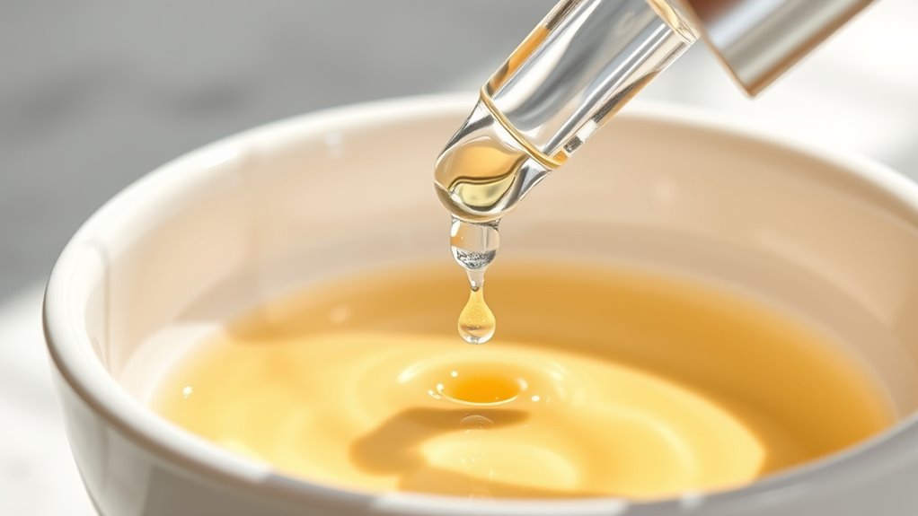 When it comes to ingredient spotlight, essences often contain a blend of nourishing and hydrating components that target specific skin concerns. Ingredients like hyaluronic acid, glycerin, and botanical extracts are common, each chosen for their ability to attract and lock in moisture. These ingredients work synergistically to enhance your skin’s barrier function, making it more resilient against environmental stressors. Some essences also include antioxidants or soothing agents like centella or chamomile, which calm irritated skin and reduce redness. Because they’re so lightweight, essences can carry a high concentration of these actives, ensuring your skin gets maximum benefit with just a few drops. Additionally, incorporating hydrating ingredients into your routine can significantly improve your skin’s overall health.