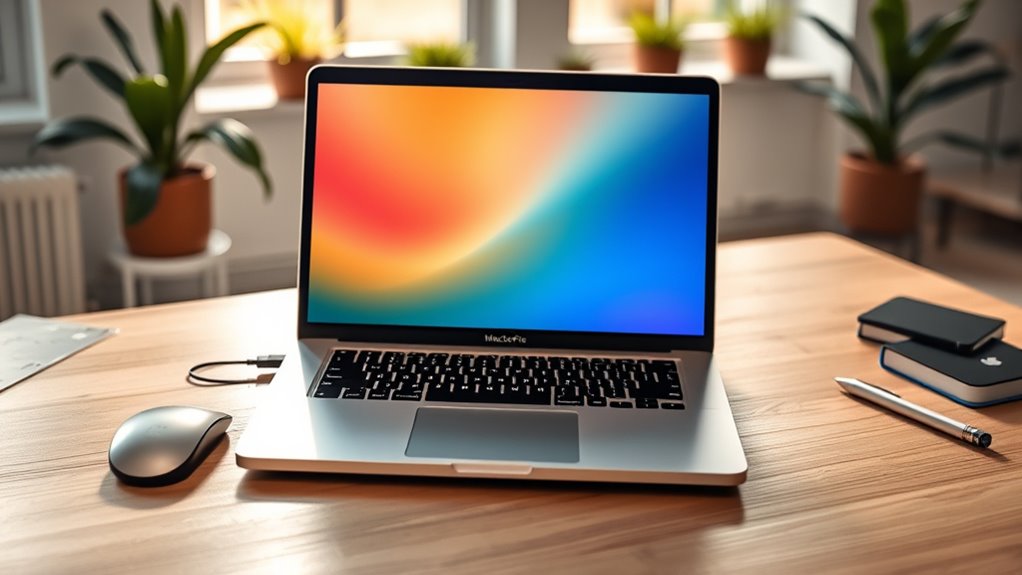 A high-quality display is essential for maximizing productivity and ensuring accurate visuals on a 4TB MacBook Pro. I find that larger screens, like the 16.2-inch model, offer more workspace for multitasking and detailed editing, which is critical for power users. The Liquid Retina XDR display supports up to 1 billion colors, delivering vibrant, true-to-life visuals. With ProMotion technology, the adaptive refresh rate of up to 120Hz makes scrolling and animations incredibly smooth. Brightness levels reaching 1600 nits and contrast ratios of 1,000,000:1 enhance HDR content and deep blacks, immersing me in my work. The P3 wide color gamut guarantees consistent color accuracy, essential for professional creative workflows. These display features combine to create an immersive, precise, and efficient user experience.