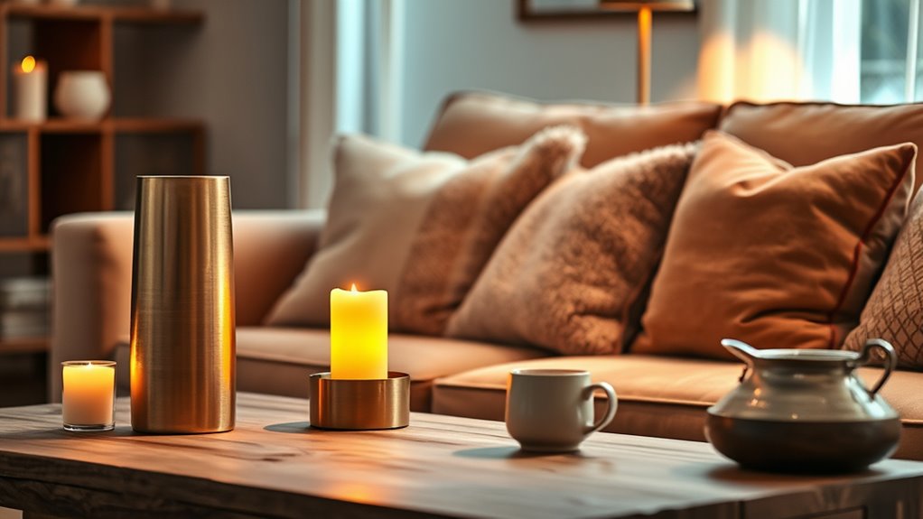 Choosing a candle warmer lamp that complements your home decor begins with considering its design style. It’s important to match the lamp’s aesthetic with your space, whether modern, vintage, or minimalist. Color options and materials, like glass, metal, or wood, should blend seamlessly with existing furniture and room accents. The shape and decorative details—such as floral or geometric patterns—can enhance your overall theme and create a cohesive look. Additionally, the lamp’s size and proportions should fit comfortably within your space, neither overpowering nor being lost among other decor elements. Selecting a style that reflects your desired ambiance, whether cozy, elegant, or contemporary, guarantees the warmer enhances your room’s atmosphere while maintaining visual harmony.