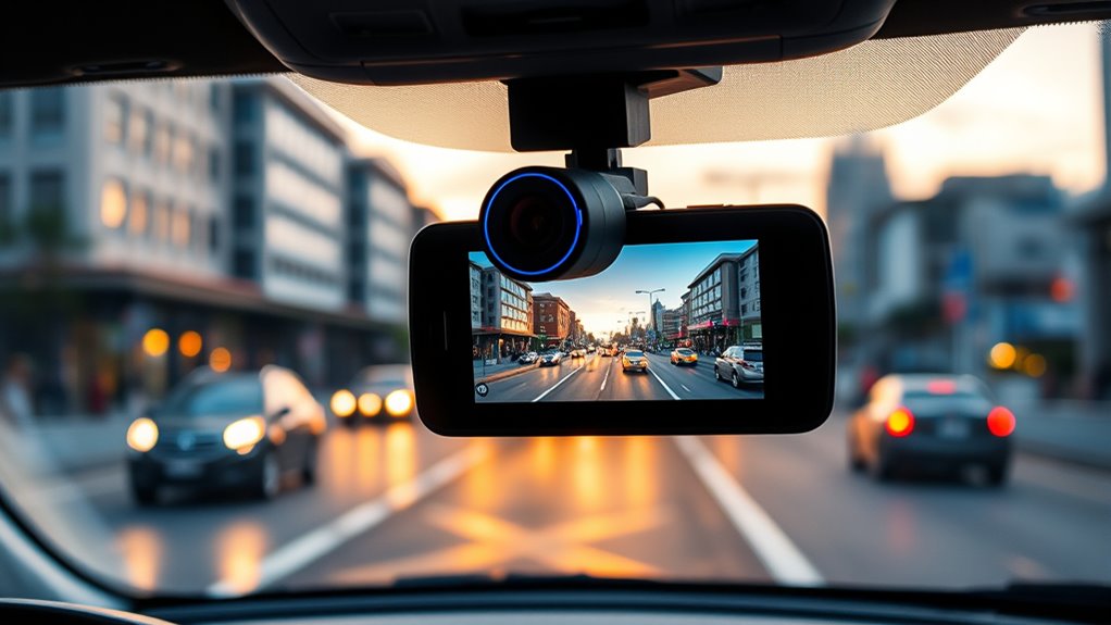 Looking for the best dash cameras of 2025? I recommend models with 4K resolution, wide angles, and night vision features to keep you safe in all conditions. Many options now include dual front and rear cameras, WiFi, GPS, and parking modes that protect your vehicle even when you’re away. These advanced features ensure sharp footage, easy sharing, and reliable security. If you want detailed insights and top picks, stick around—I’ve got all the info you require.