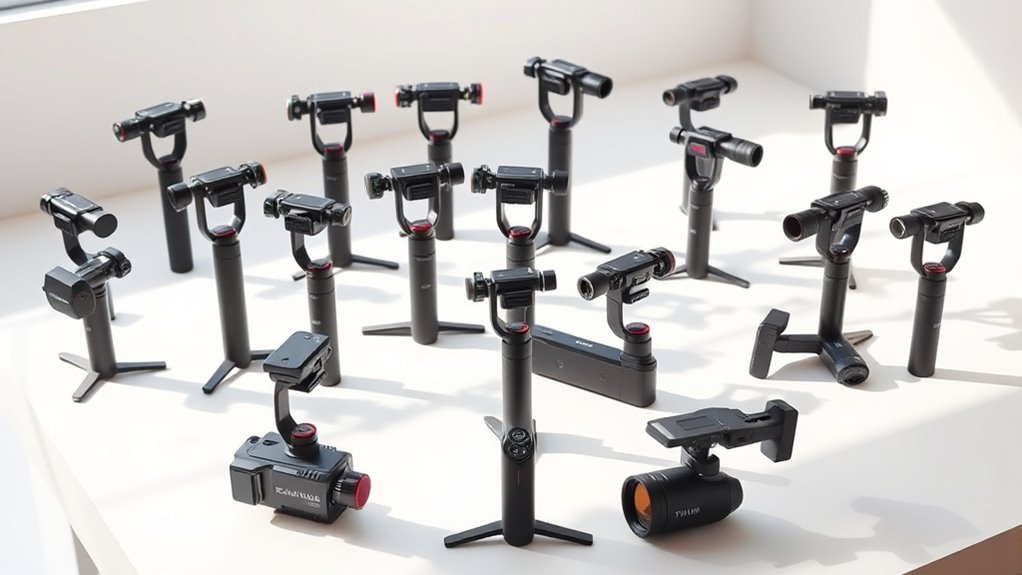 If you’re looking for the 15 best gimbal stabilizers for videography in 2025, I’ve got you covered. From compact smartphone stabilizers like DJI Osmo Mobile 7 and hohem iSteady X3 SE to professional-grade equipment like the DJI RS 3 Mini, each offers unique features, portability, and advanced stabilization tech. Whether you shoot with smartphones, action cams, or mirrorless cameras, there’s something for every creator. Keep exploring, and you’ll discover the perfect stabilizer for your needs.