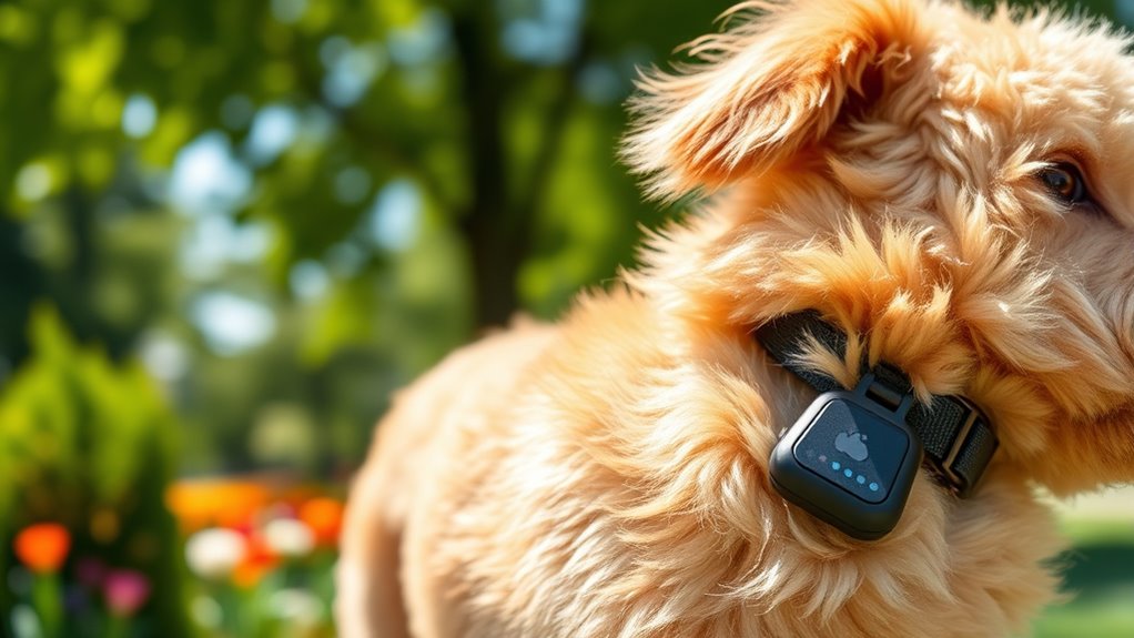 The size and comfort of a pet GPS tracker play a significant role in ensuring your furry friend’s well-being and consistent wear. A tracker should be proportionate to your pet’s size, with lightweight devices under 1 ounce ideal for small animals. A compact, slim design helps prevent chafing and irritation, especially for active or long-haired pets. Adjustable straps or collars are essential for a secure fit, so the tracker doesn’t slip or cause discomfort during movement. Devices with rounded edges and soft materials further reduce skin irritation, making wearing more comfortable. Considering the weight and size prevents your pet from feeling burdened, encouraging constant use. Ultimately, a comfortable, well-fitting tracker supports effective monitoring without compromising your pet’s happiness or safety.
