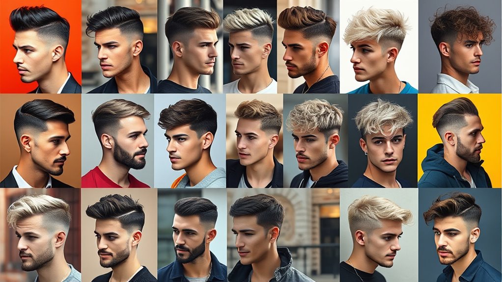 After considering your lifestyle and maintenance preferences, it’s time to explore popular style trends that can help you express your personality. If you’re looking for versatility, the fade, undercut, and crew cut are excellent choices that work with various face shapes and hair types. For a relaxed yet stylish vibe, textured hairstyles like the quiff or messy crop are in vogue, especially with a bit of product. If low maintenance is your goal, you can’t go wrong with a buzz cut. On the flip side, long hairstyles like the man bun are trending, showcasing diverse grooming preferences. Finally, the resurgence of 90s styles, such as curtain bangs and mullets, adds a nostalgic flair to modern looks.