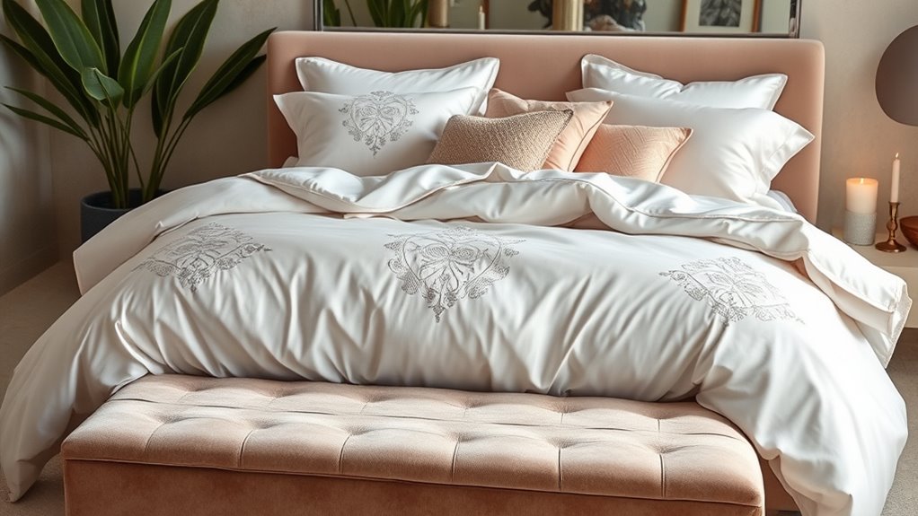 So, don’t let the price tag hold you back—investing in quality luxury bedding truly transforms your space and sleep. I get it, it’s a bit of an indulgence, but think of it as creating your personal spa retreat every night. With the right set, you’ll enjoy unmatched comfort and style that lasts. Trust me, once you experience that luxurious feel, you’ll wonder why you waited so long to upgrade.