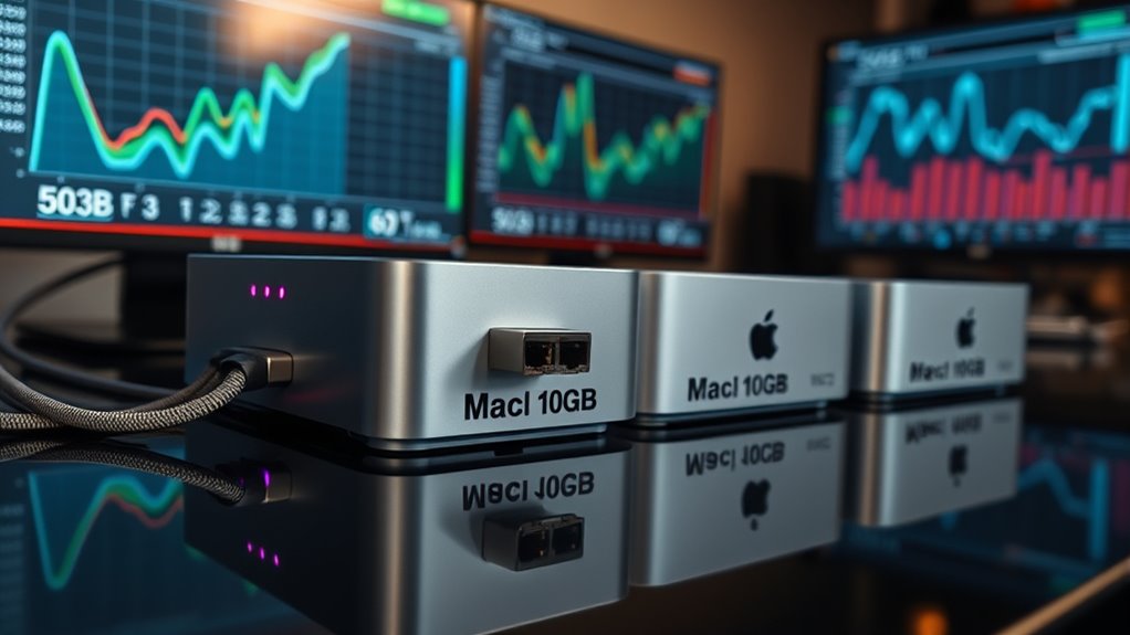 Remember, speed isn’t just about raw power—it’s also about making smart choices. With these top Mac minis featuring 10GB Ethernet, you’re set for lightning-fast connections and smooth performance in 2025. Don’t put all your eggs in one basket; weigh the specs that matter most to you. After all, a wise man once said, “The early bird catches the worm,” so choose your perfect Mac mini now and stay ahead of the curve.