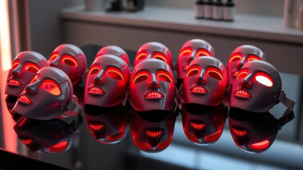 The 15 best red light therapy masks for 2025 combine advanced LED technology, multiple wavelengths like 660nm and 850nm, and full coverage designs to deliver professional-quality skin rejuvenation at home. They target concerns such as wrinkles, redness, and elasticity with customized modes, comfortable fit, and rechargeable features. Many options include remote controls and multiple light settings, making treatments versatile and effective. Exploring these options further reveals how to choose the right device for personal skincare goals.
