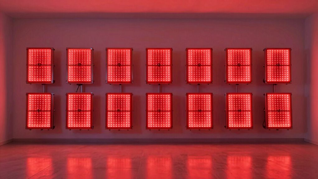 Red light therapy panels are generally safe for all skin types, acting like a gentle breeze that’s easy to ride. I always recommend starting with shorter sessions to see how your skin reacts, especially if you have sensitive skin. While adverse reactions are rare, it’s smart to consult a dermatologist if you have specific skin conditions. Overall, when used properly, red light therapy offers a safe, natural boost for your skin.