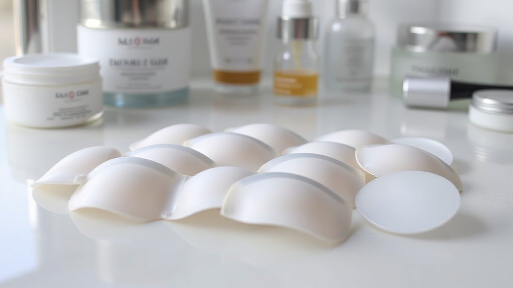 When selecting reusable silicone forehead patches, I look at the material quality and safety to guarantee they won’t irritate my skin. Durability and reusability are also key, so I get the most value from my investment. Finally, I consider how well they fit and feel on my skin, along with ease of application and compatibility with my skin type.